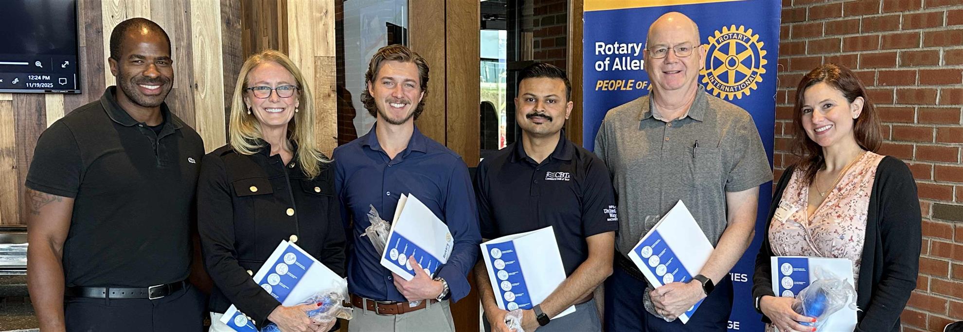 The Allen Rotary Club inducted five new members today. Pictured from right to left are Club President Albert Bryant, Kristi Guzinski, Teddy Lindblad, Mihir Patel, Bill Reynolds and Jessica Jones.